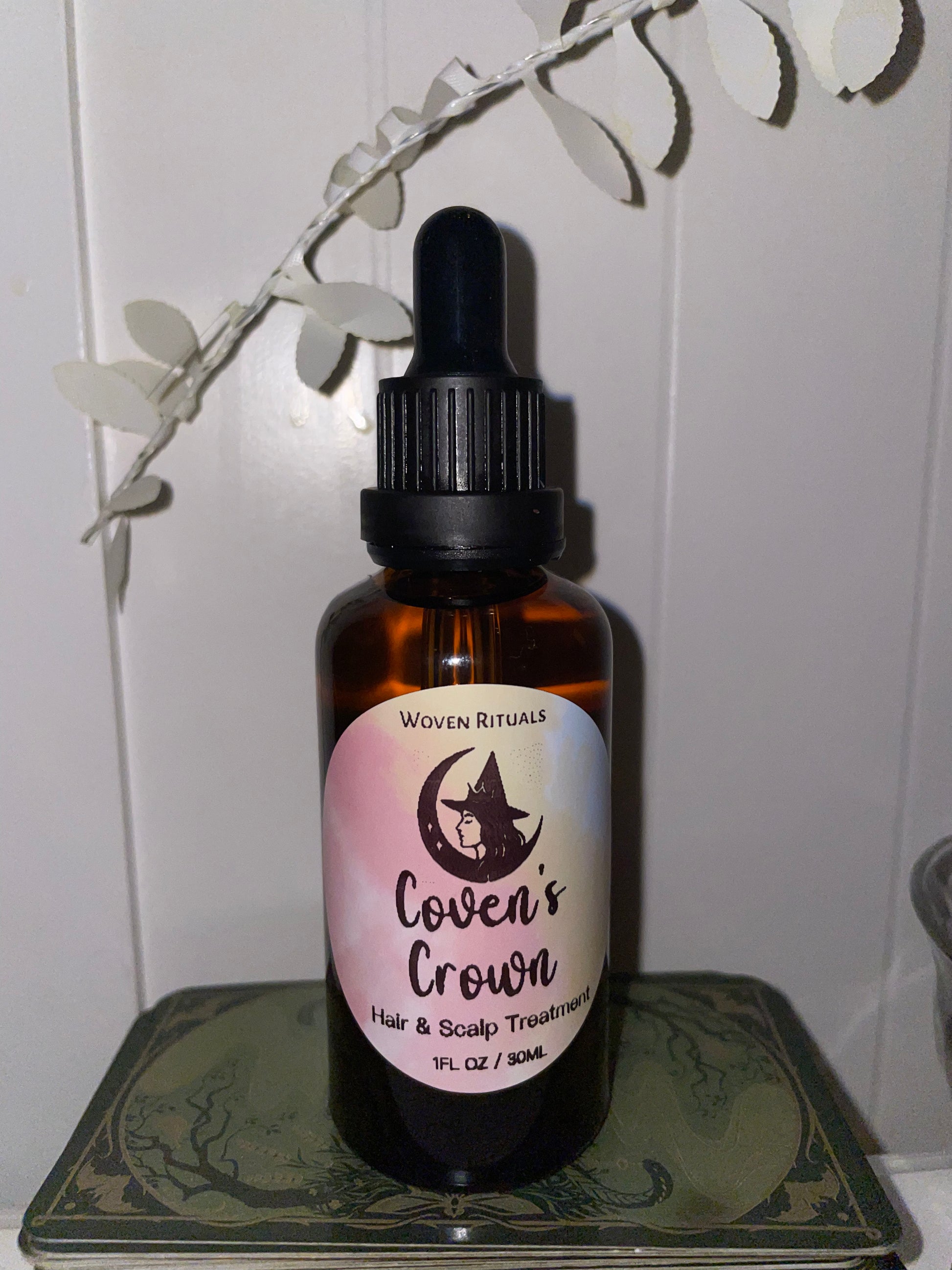 Enrich your hair and nourish your scalp with Coven's Crown hair serum. Harness the power of crown chakra cleansing and magik with this treatment. Follow the spell/chant on the product to take your hair care routine to the next level.